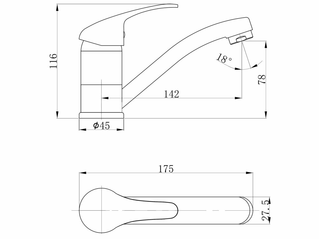 BALLETTO 81018 Batéria stojanková umývadlová / drezová, rameno 200mm