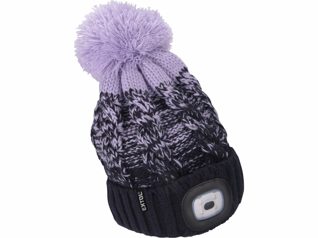 EXTOL LIGHT 43466 Čiapka tmavo-modrá/fialová s čelovým svetlom, LED 4x45lm, 300mAh Li-ion, nabíjanie cez USB