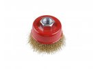 Kartáč hrnčekový so stopkou, vlnitý pomosadzený drôt 0,3mm, Ø63mm, stopka Ø6mm, EXTOL CRAFT