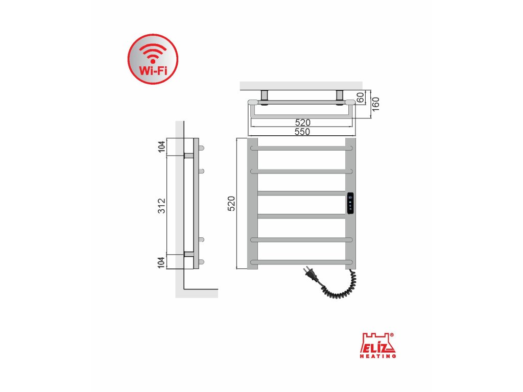 Elektrický sušiak, príkon 109 W, čierna matná farba, zabudovaný ohrievací vodič, elektronické ovládanie teploty s funkciou WIFI, časovač zaponutia/vypnutia, krytie IP44, automatické vypnutie pri prehriatí.Dodatočné parametre
