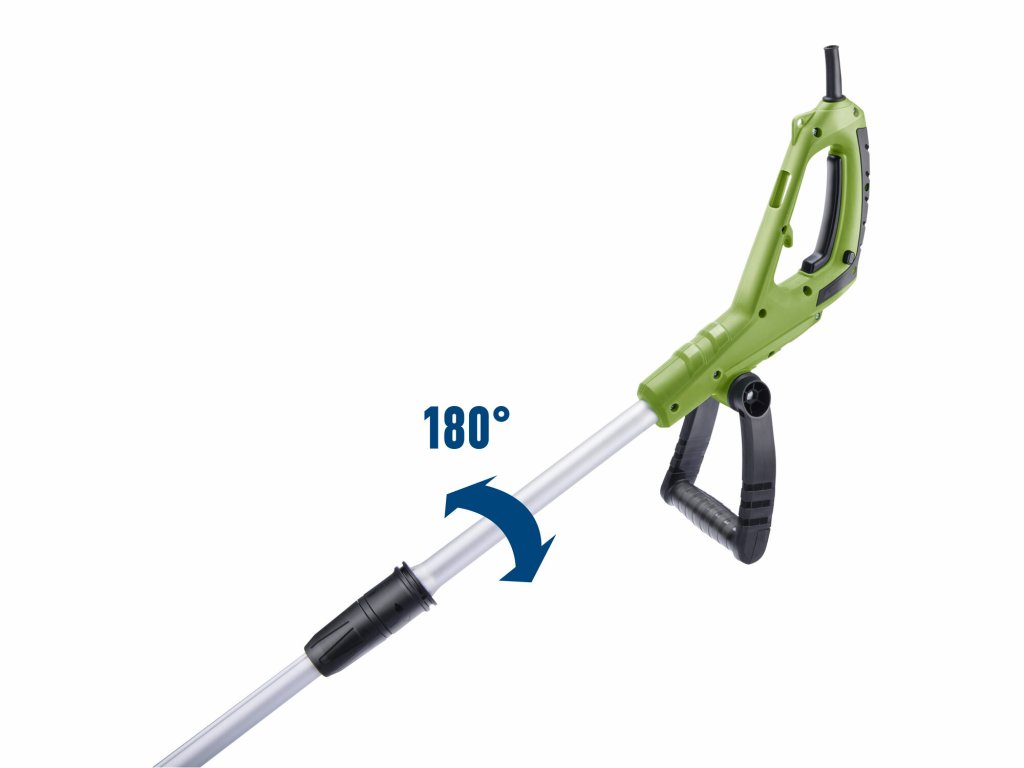 - nastavenie uhla hlavy sekačky umožňuje sekanie aj pri okrajoch trávnikov pozdĺž chodníkov, príjazdových ciest a pod.