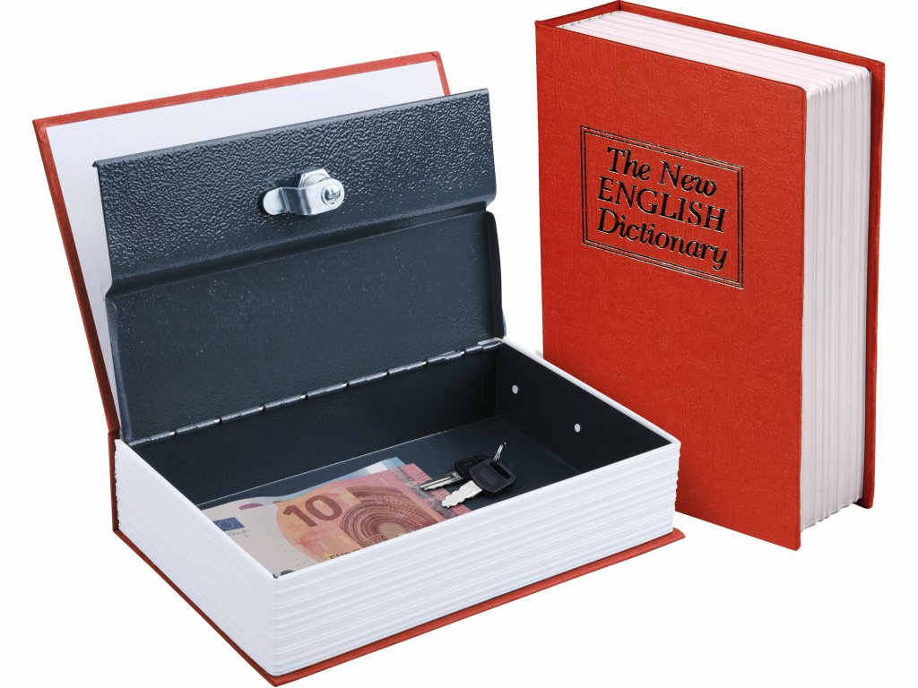- vonkajší obal, imitujúci vzhľadovo aj dotykovo knihu v tvrdej väzbe, znižuje možnosť nájdenia schránky nepovolanou osobou