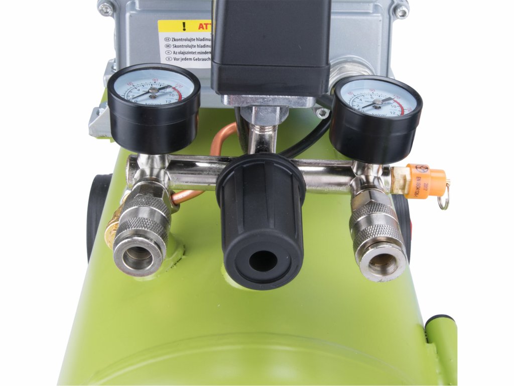 Na dodávku stlačeného vzduchu: na pohon pneumatického náradia, nanášanie farieb, čistenie vzduchom, hustenie pneumatík.- na prehľadnom manometri nastavíme hodnotu potrebného výstupného tlaku