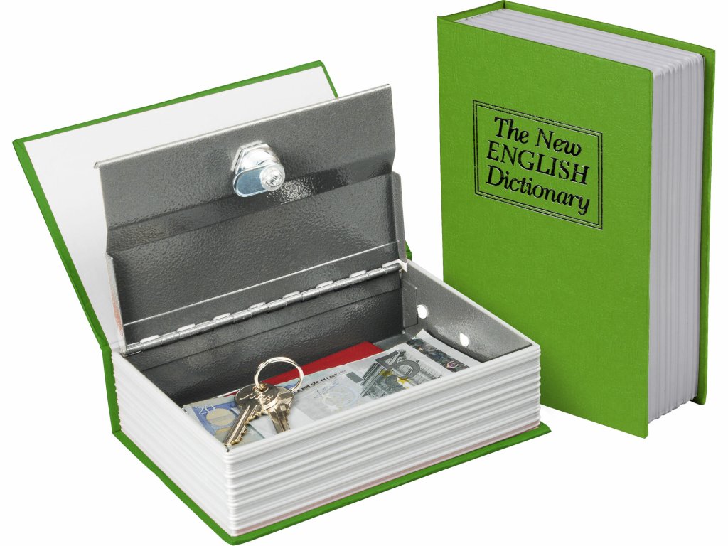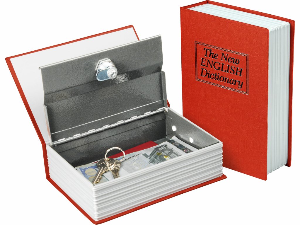 - vonkajší obal, imitujúci vzhľadovo aj dotykovo knihu v tvrdej väzbe, znižuje možnosť nájdenia schránky nepovolanou osobou