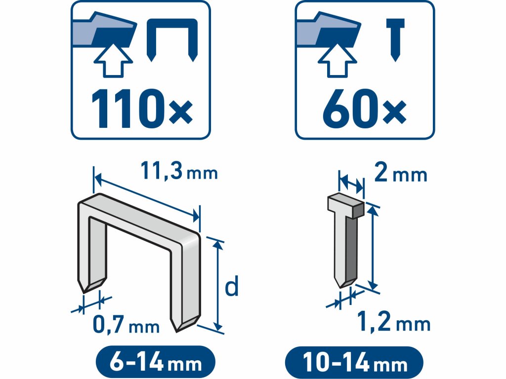 Sponkovačka/klincovačka určená na pripevňovanie textílií, fólií, kože, lepenky, dekoračných a izolačných materiálov na drevený alebo drevu podobný materiál s použitím klincov a spôn.- nízka hmotnosť, malé rozmery a príjemné držanie sponkovačky zaisťujú pohodlnú prácu