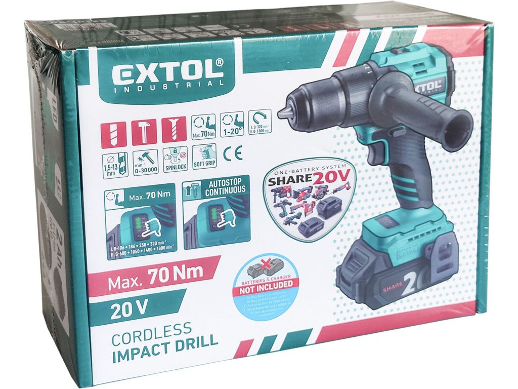 EXTOL INDUSTRIAL 8791805 Vŕtačka s príklepom aku Share20V, bez aku, 70Nm, bezuhlíkový motor