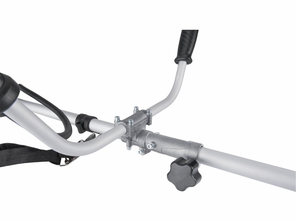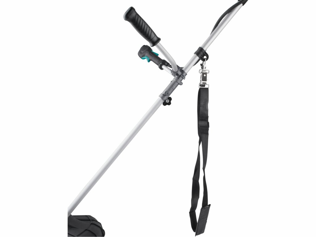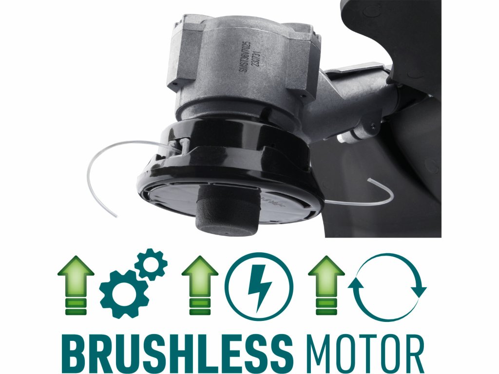 Silný akumulátorový krovinorez určený na udržiavanie trávnatého porastu a s použitím oceľového žacieho noža aj na sekanie vysokých bilín, kríkov a podrastu s priemerom stonky až 4cm. Pre ľahkú manipuláciu pri kosení má krovinorez ergonomicky tvarované rukoväte pre obe ruky a ramenný popruh, ktorý prenáša väčšinu hmotnosti na telo a ruky používate len na jemnú manipuláciu. Krovinorez je poháňaný najmodernejším bezuhlíkovým motorom. Tento nový typ motora má vyššiu životnosť, je výkonnejší a má menšiu spotrebu ako klasické motory s uhlíkovými kefami. Vďaka malej veľkosti a pri zachovaní vysokého výkonu bolo možné motor umiestniť do hlavy kosačky a vďaka tomu je v dlhej tyči kosačky len kábel, čo umožňuje výrazne znížiť vibrácie a zvýšiť efektivitu motora. Do stroja sa vkladajú dva akumulátory, ktoré spoločne poskytujú motoru vysoký výkon aj pri vyššej záťaži. Žaciu struny ju možné pri práci predĺžiť jednoduchým poklepom o zem. Na rukoväti sú ľahko prístupné tlačidlá pre zapnutie a reguláciu otáčok v 3 stupňoch - 3800/5000/6700 ot./min. a tiež bezpečnostné tlačidlá zabraňujúce náhodnému spúšťaniu stroja pri manipulácii. Pre ľahkú prepravu je možné krovinorez jednoducho rozložiť bez nástroja, pomocou jednej skrutky.