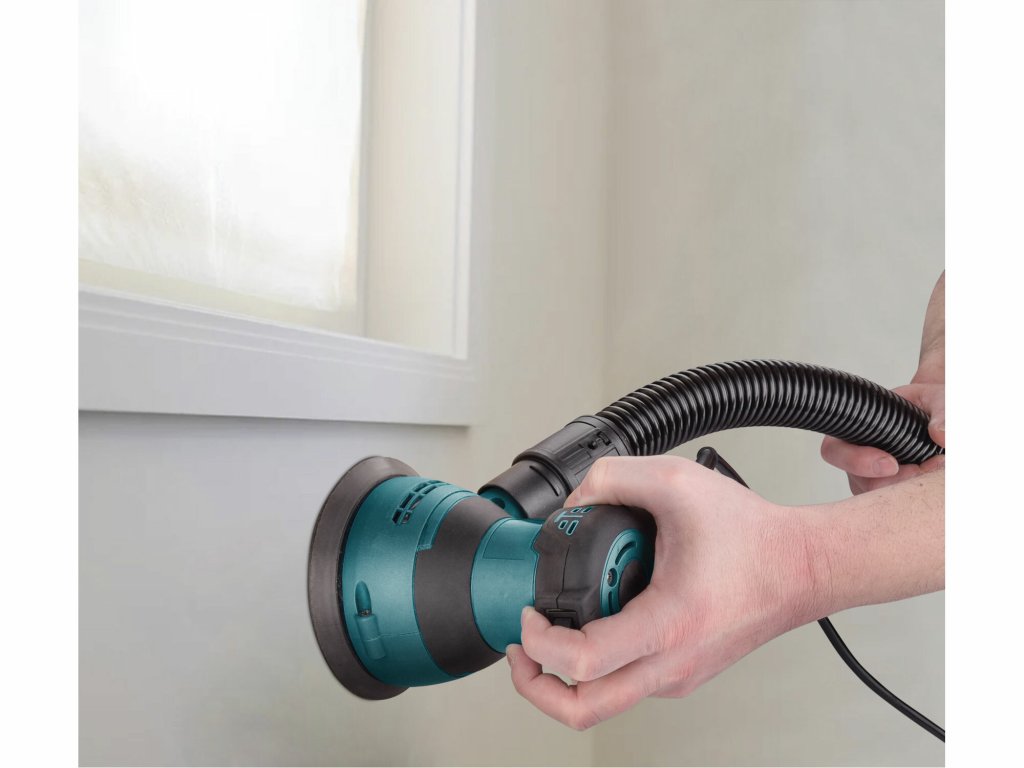 Menšia excentrická brúska na prácu jednou rukou je vhodná na brúsenie dreva (napr. obloženie, nábytku, dverí, okien), kovu, umelej hmoty, tmelu, tiež na obrusovanie náterov a korózie alebo na leštenie zasucha. Vďaka malým rozmerom sa používa aj na prácu v ťažšie prístupných miestach. Pri práci jednou rukou máte väčší cit v ruke a môžete jemnejšie manipulovať strojom na povrchu materiálu. Orbitálne (excentrické) pohyby kotúča zvyšujú efektivitu brúsenia a znižujú mechanické stopy na materiáli, ktoré môžu vznikať pri brúsení vo vysokých rýchlostiach. Regulácia otáčok stroja je vhodná pri opracovávaní rôznych typov materiálov. Brúska má zabudované odsávanie jemného prachu vznikajúceho pri brúsení a zachytáva ho do zbernej nádoby, čím výrazne zmenšuje znečistenie pracovnej plochy a vzduchu pri práci. Pokiaľ máte k dispozícii priemyselný vysávač, môžete ho tiež pripojiť na brúsku a tým zvýšiť kvalitu odsávania jemného prachu. Brúsne papiere sú upevnené pomocou suchého zipsu. Brúska nie je vhodná na brúsenie sadrokartónu.