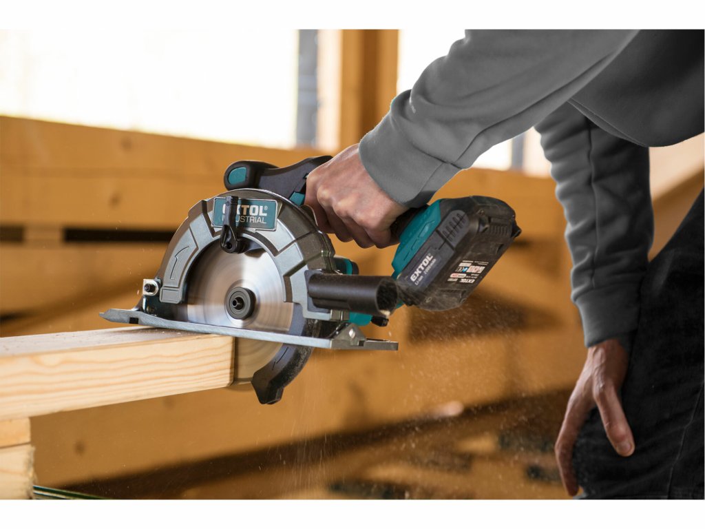 Bezuhlíková kotúčová píla je navrhnutá tak, aby užívateľom poskytla výkonné a ľahké rezanie pri rôznych inštalatérskych, elektrikárskych, rámovacích, dokončovacích a tesárskych prácach. Píla poháňaná najmodernejším "brushless" motorom s 3650 ot./min umožňuje používateľovi rýchlo a ľahko rezať tvrdý materiál. Tento nový typ motora má vyššiu životnosť, je výkonnejší a má menšiu spotrebu energie ako klasické motory s uhlíkmi. Horný a spodný kovový ochranný kryt poskytujú výbornú ochranu kotúča pri páde. Gumová mäkká rukoväť je ergonomicky navrhnutá tak, aby užívateľovi poskytovala vynikajúce pohodlie a vyváženie pre ľahko ovládateľné rezy. Pre bežnú prácu postačujú jeden alebo dva 2000mAh akumulátory, ktoré môžete rýchlo nabiť v rýchlonabíjačke. Pre náročnejšie alebo dlhšie práce odporúčame väčšie akumulátory s kapacitou 4000mAh. Akumulátory je možné použiť vo všetkých typoch náradia radu EXTOL Share20V a vďaka Li-ion technológii je možné ich kedykoľvek dobíjať, bez toho aby sa tým znižovala ich kapacita alebo životnosť. Li-ion akumulátory strácajú energiu vplyvom samovybíjania veľmi pomaly a vydržia dlho nabité a pripravené na použitie.- bezuhlíkový motor má dlhšiu životnosť, vyšší výkon, menšiu spotrebu elektrickej energie a poskytuje vysoký krútiaci moment