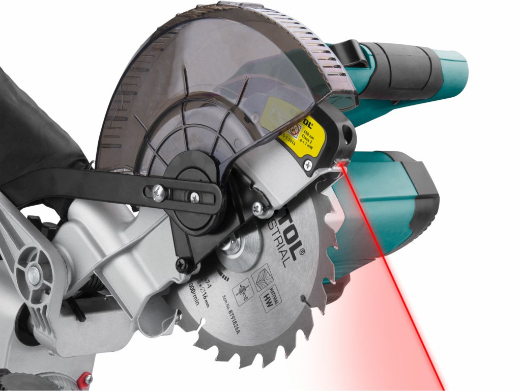 Aku pokosová a kapovacia píla s laserom je určená na vykonávanie presných priečnych a pozdĺžnych rezov masívneho dreva, drevovláknitých a drevotrieskových dosiek, tenkých profilov z umelej hmoty, hliníkových profilov a tenkých mäkkých neželezných materiálov s použitím na to určených pílových kotúčov. Píla je poháňaná najmodernejším bezuhlíkovým motorom s 3300 ot./min, ktorý umožňuje rýchly a ľahký rez. Tento nový typ motora má vyššiu životnosť, je výkonnejší a má menšiu spotrebu ako klasické motory s uhlíkovými kefami. Masívna základňa píly je vyrobená z hliníka. Pre pohodlnú prácu je píla vybavená laserom, výsuvnými opierkami pre dlhšie materiály a svorkou pomocou ktorej si môžete upnúť materiál na pracovnú plochu. Zvýšenie bezpečnosti práce zaručuje elektrická brzda, ktorá zastaví pílový kotúč ihneď po uvoľnení spínača. súčasťou píly je výstup pre zachytávanie pilín do priloženého vrecúška alebo pre pripojenie k odsávaciemu systému.