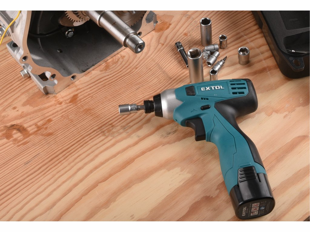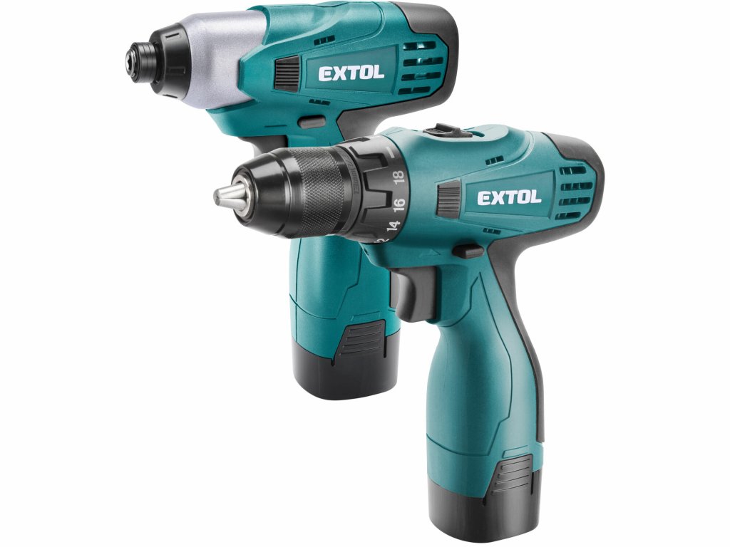 EXTOL INDUSTRIAL 8798300 Sada aku náradia v kufríku: vŕtačka 16/33Nm a rázový uťahovač 120Nm, 2x akumulátor Li-ion 14,4V 1,5Ah