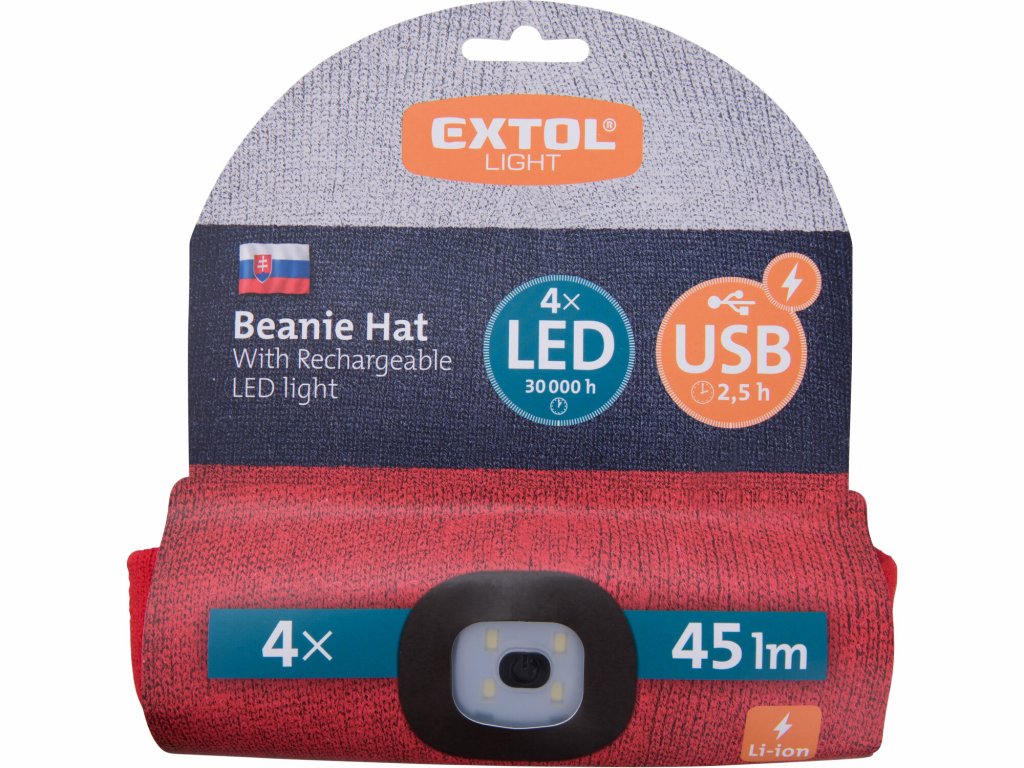 EXTOL LIGHT 43451 Čiapka s čelovým svetlom, 4x LED, 45lm, Li-ion 300mAh, trikolóra