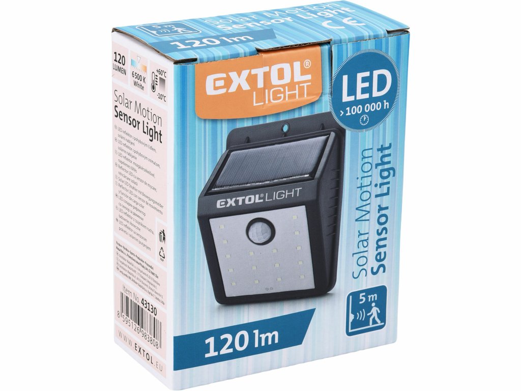 EXTOL LIGHT 43130 Svietidlo LED solárne s pohybovým senzorom, 16xLED, 120 lm, IPX4