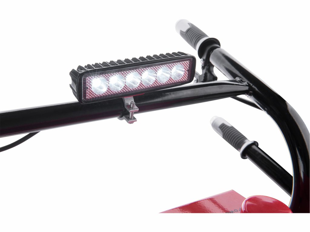 Transportér je určený na prepravu tuhých, sypkých alebo hustých materiálov. Vďaka elektrickému pohonu výrazne urýchľuje prepravu materiálu a zároveň znižuje únavu obsluhy, čo zvyšuje produktivitu práce. Stroj má na pravej rukoväti ovládač, kde si pomocou palca nastavíte okamžitú rýchlosť smerom dopredu aj dozadu. Na ovládači je možné prepínať smer jazdy, voliť normálnu rýchlosť alebo Turbo a ovládať brzdu. Pre bežnú prevádzku sa používa normálna rýchlosť, Turbo je možné použiť pri jazde do kopca, v ťažkom teréne alebo pri preprave ťažšieho nákladu. Transportér je poháňaný najmodernejším bezuhlíkovým motorom, ktorý má vyššiu životnosť, je výkonnejší a má menšiu spotrebu elektrickej energie ako klasické motory s uhlíkovými kefami. Ak je to nutné, je možné motor kompletne vypnúť a používať transportér len na ručný pohon. Zabudovaná prevodovka s diferenciálom výrazne zlepšuje priestupnosť terénom a účinnosť výkon motora pri jazde do kopca. Váha celého nákladu je sústredená nad osou kolies a neprenáša sa na rukoväte, obsluha len riadi smer. Stroj je vybavený dvoma brzdami - elektrickou, ktorú je možné aktivovať na ovládači a manuálnou, ktorá slúži jednak na pribrzďovanie pri jazde z kopca, ale vďaka poistke je možné ju tiež použiť ako parkovaciu brzdu. Pneumatiky majú hlbokú vzorku do terénu s dobrou trakciou. Transportér je dodávaný s kovovou korbou s objemom 200l pre sypký materiál. Je možné s ním pracovať aj za daždivého počasia a je vybavený silným LED svetlom na prácu za zníženej viditeľnosti. Pred naložením do auta môžete vysunúť rukoväte, aby sa zmenšila dĺžka pri preprave. Zdrojom elektrickej energie pre pohon je silný 54V/15Ah Li-ion akumulátor s LED displejom ukazujúcim úroveň nabitia a okamžité napätie. Akumulátor je odnímateľný, čo umožňuje ľahké nabíjanie a skladovanie v suchom a zateplenom prostredí, čo je veľmi dôležité pre jeho životnosť. Má ochranu proti vybitiu pod minimálnu úroveň, proti preťaženiu pri nadmernom odbere prúdu, prebitiu, skratu a náhlemu zvýšeniu teploty pri prevádzke.