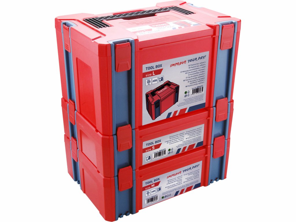 - všetko je uložené v kvalitnom plastovom boxe s možnosťou pevného spojenia viacerých boxov dohromady pomocou posuvných zámkov (rad 885607x)