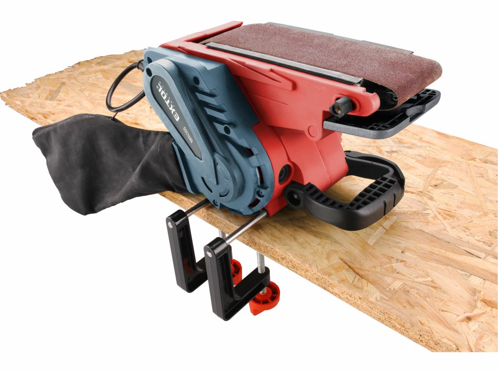 - vďaka praktickým svorkám v príslušenstve môžete brúsku pripevniť na pracovnú dosku pásom dohora