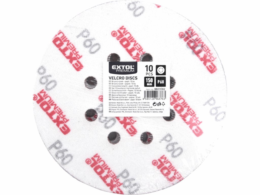 EXTOL PREMIUM 8803582 Papier brúsny na s. zips Ø150mm s otvormi, P60, 10ks