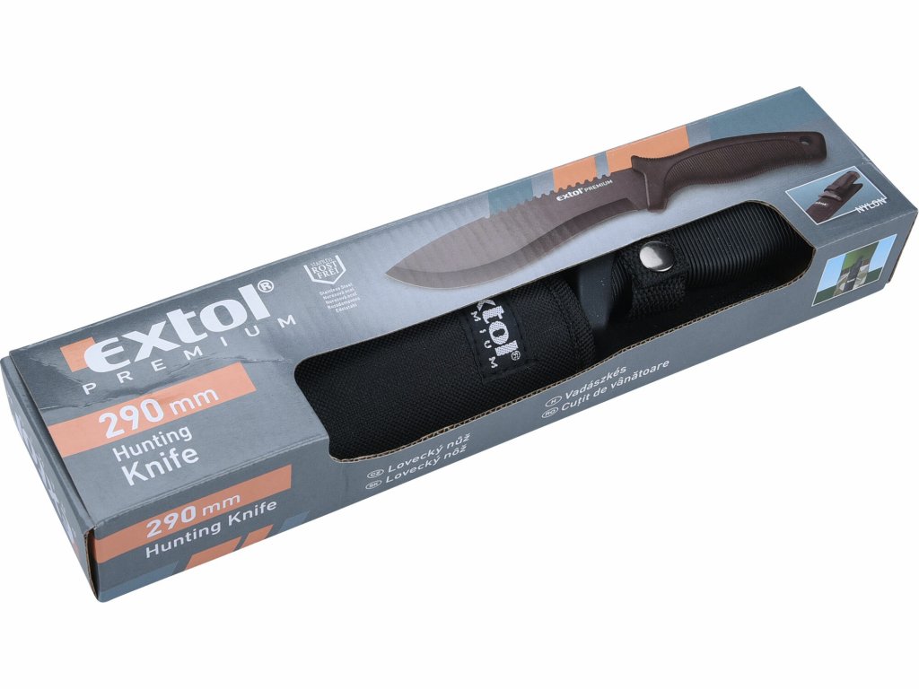 | doplňujúci parameter: | dĺžka 290mm,dĺžka čepele 170mm,materiál antikoro,nylonové puzdro na opasok |