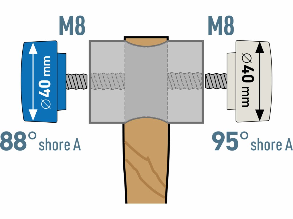 | doplňujúci parameter: | Ø40mm, dĺžka 320mm, hlavice tvrdosti 88° a 95° Shore A |