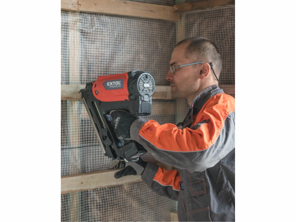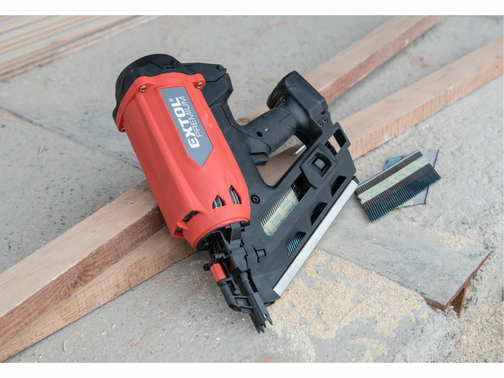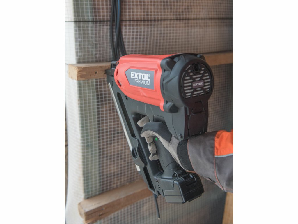 EXTOL PREMIUM 8894580 Klincovačka plynová, 80J, klince 50-90mm, akumulátorové zapaľovanie