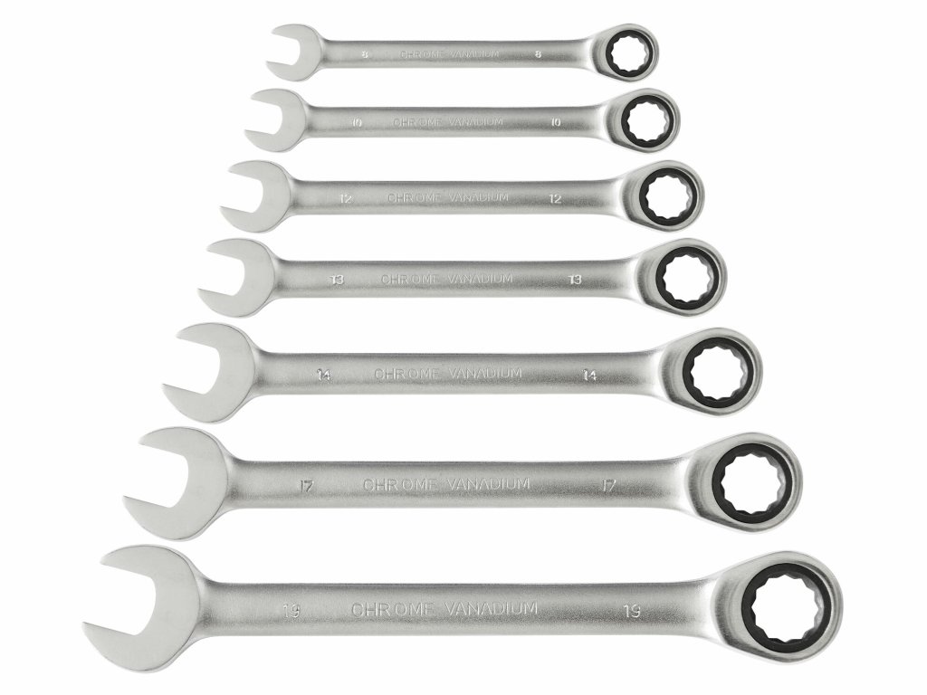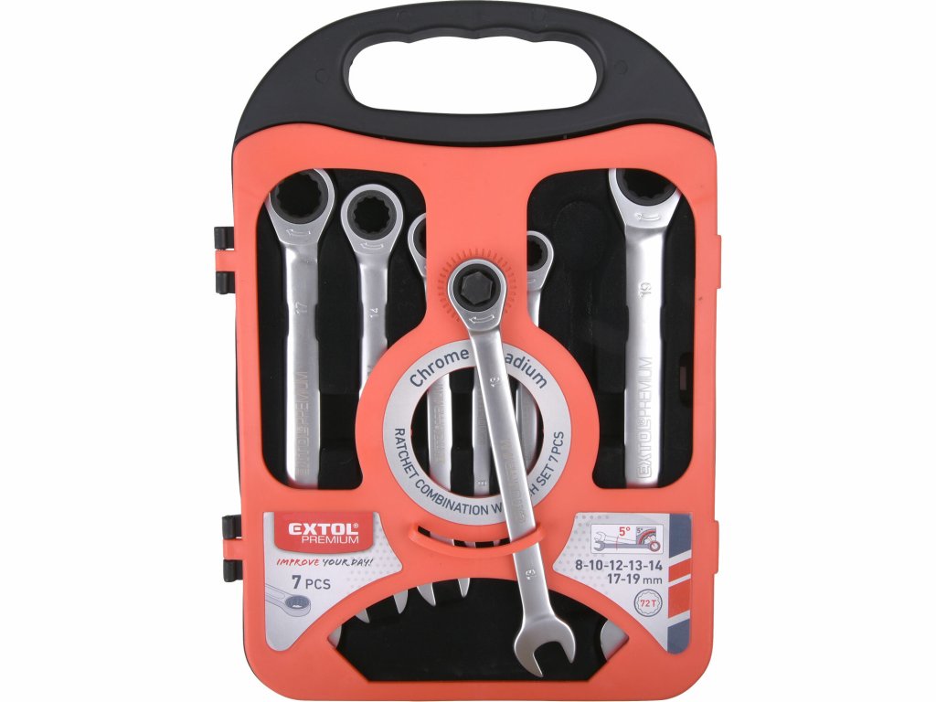 EXTOL PREMIUM 8816100 Kľúče očko-vidlicové, račňové, 72 zubov, 7-dielna sada, 8-19mm