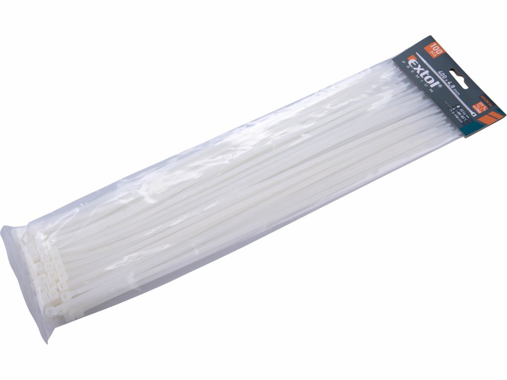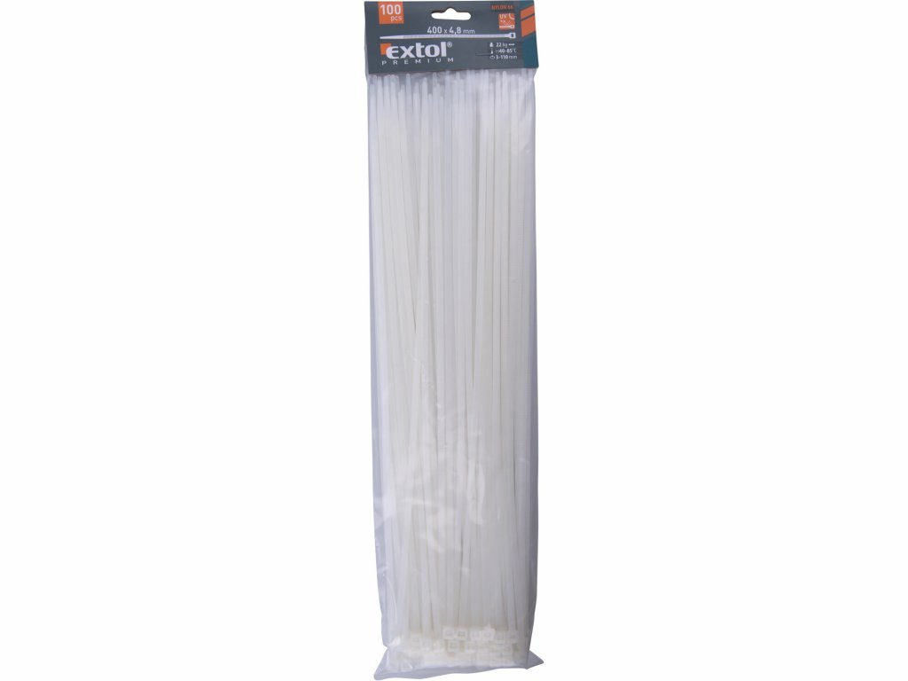 EXTOL PREMIUM 8856116 Pásky sťahovacie biele, 4,8x400mm, 100ks, Ø105mm, 22kg