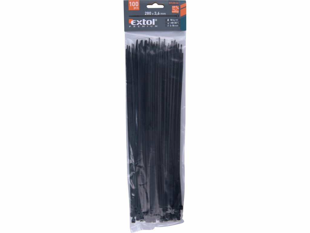 EXTOL PREMIUM 8856158 Pásky sťahovacie čierne, 3,6x280mm, 100ks, Ø70mm, 18kg