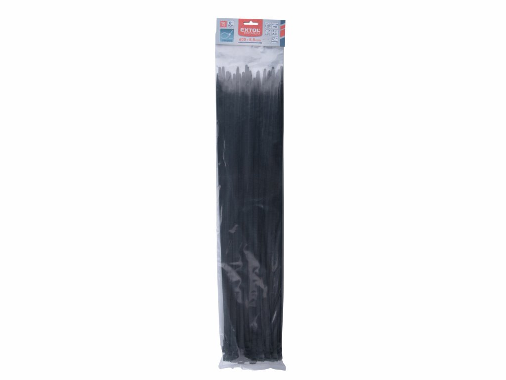 EXTOL PREMIUM 8856176 Pásky sťahovacie čierne, 8,8x600mm, 50ks, Ø170mm, 80kg