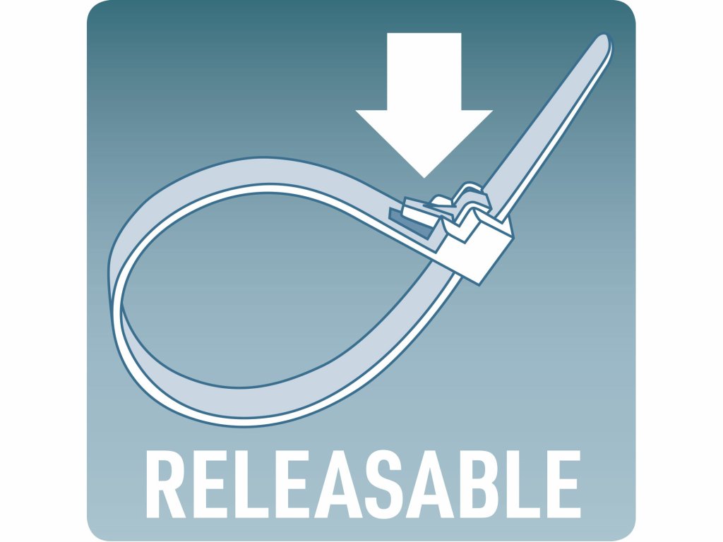 teplotný rozsah použiteľnosti -40°C až 85°C, minimálna teplota pri inštalácii 0°C- tlačidlom na zámku je možné pásku rozpojiť a znovu použiť
