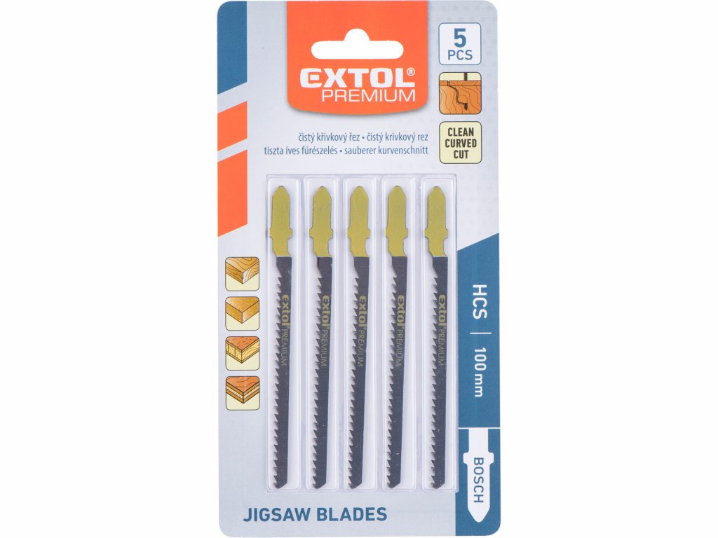 EXTOL PREMIUM 8805003 List pílový do priamočiarej pílky 5ks, HCS 75mm, kriv. rez, úchyt BOSCH