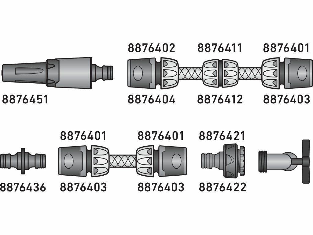 - STOP ventil zabraňuje prietoku vody v prípade, že k hadici nie je pripojený ďalší komponent (STOP ventil len pri spojkách 8876402 a 8876404)