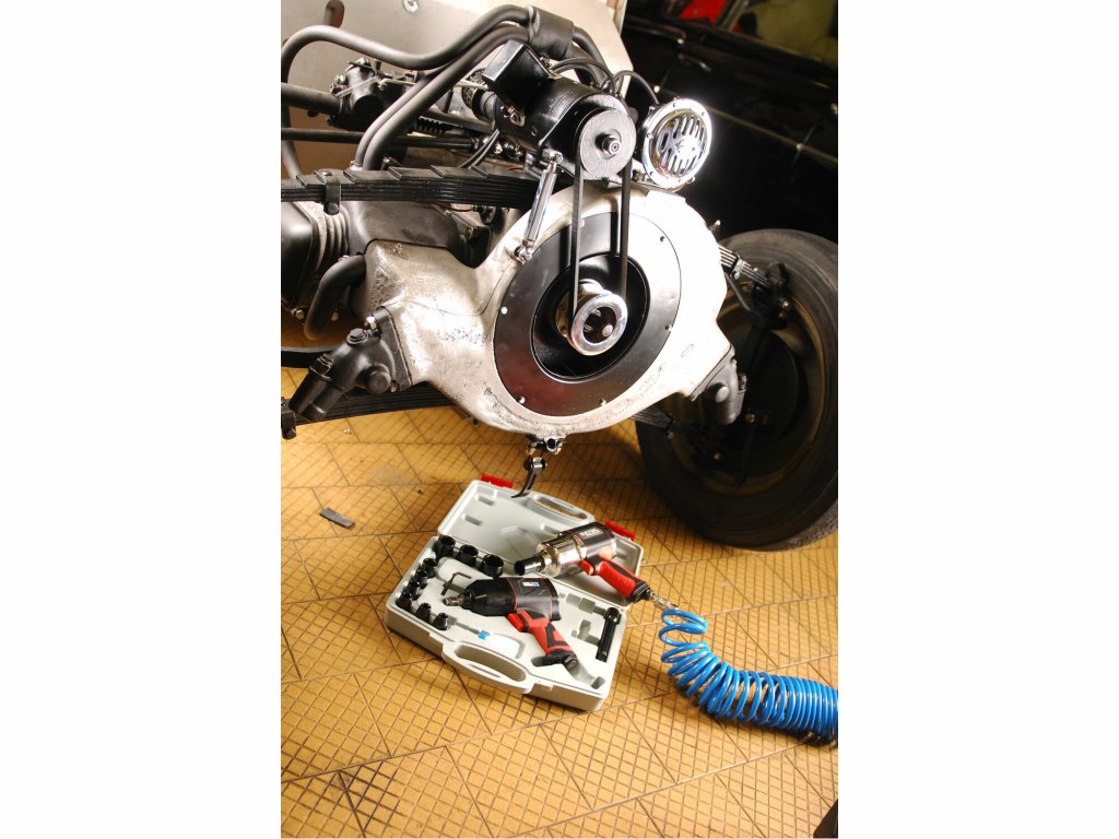 Určený na rýchle a spoľahlivé uťahovanie a povoľovanie skrutiek alebo matíc na konštrukciách, kolesách automobilov a pod.- kufor s príslušenstvom: rázové nástrčné kľúče 9-10-11-13-14-17-19- 22-24-27mm, nadstavec 125mm, imbusový kľúč, olejnička, 1/4“ konektor rýchlospojky