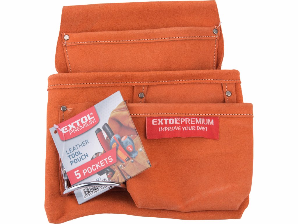 EXTOL PREMIUM 421 Vrecko na náradie, jednodielne, 6 vreciek, na opasok, kožené