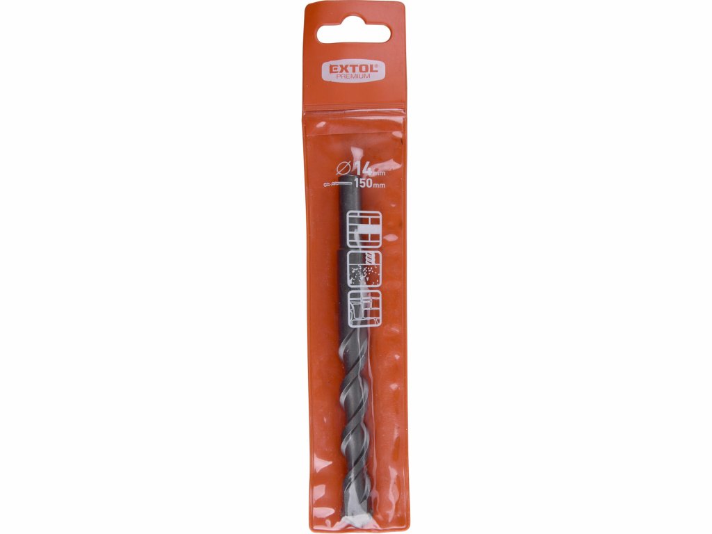 vhodný pre vŕtanie do betónu, žuly, muriva, tvárnic, tehál a im podobných materiálov- karbidový hrot tvrdený na HRA 89,5-90 zaručuje razantný priechod vrtáku materiálom