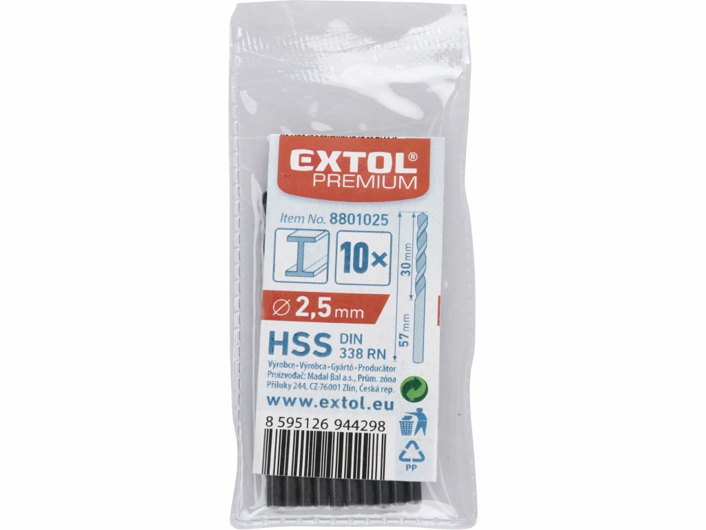 EXTOL PREMIUM 8801025 Vrták do kovu 10ks, HSS, DIN338, Ø2,5mm