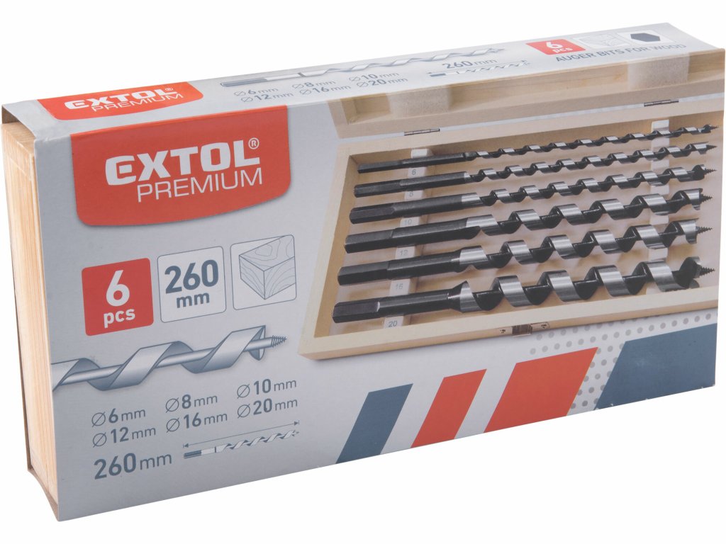 EXTOL PREMIUM 8801290 Vrtáky do dreva Ø16-20mm, dĺžka 260mm, sada 6ks, drevevné puzdro