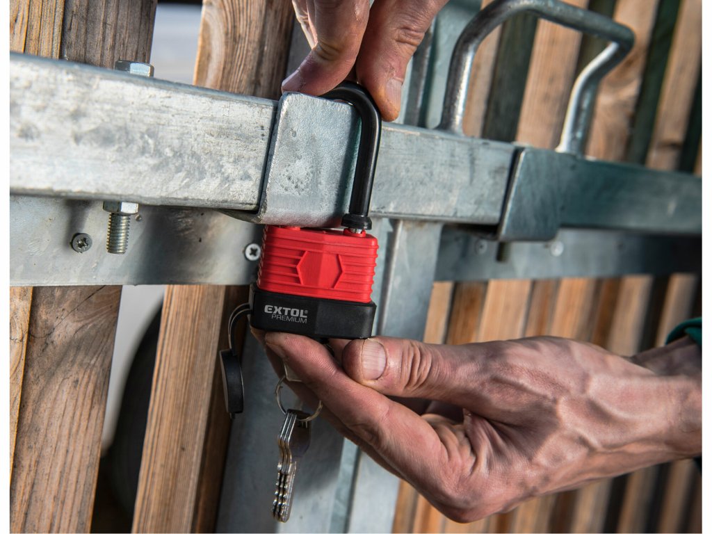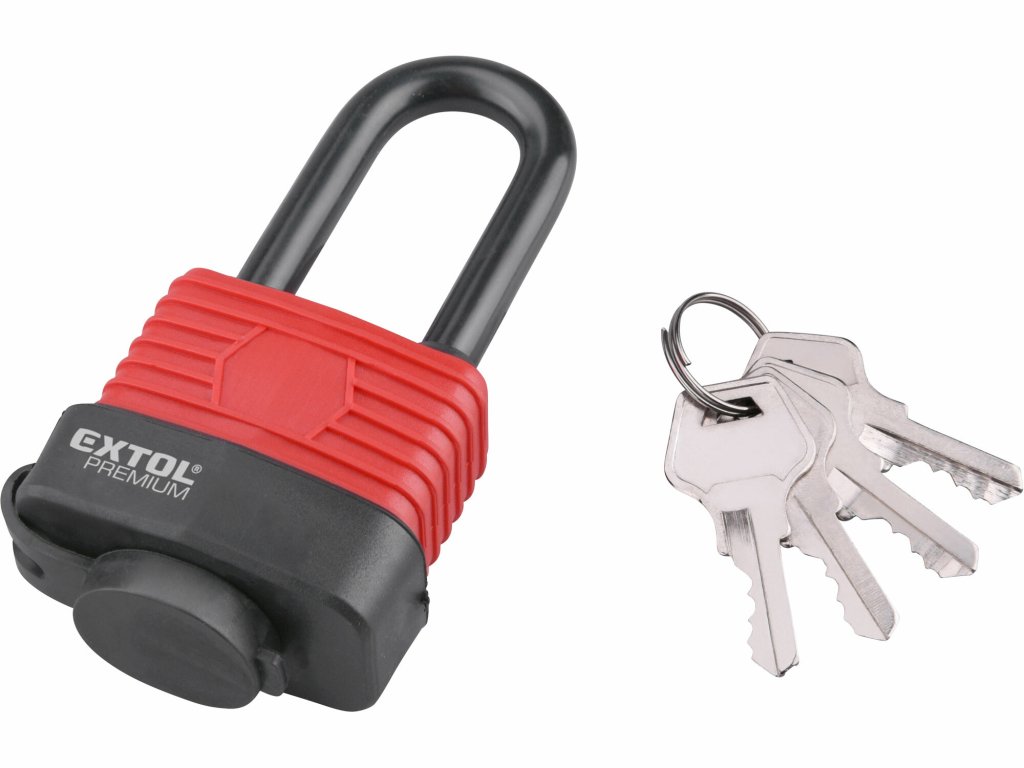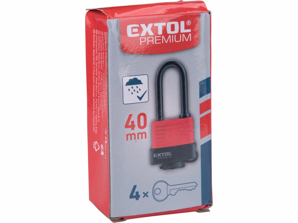 EXTOL PREMIUM 8857640 Zámok visací vodeodolný poplastovaný predĺžený, 4 kľúče, 40mm