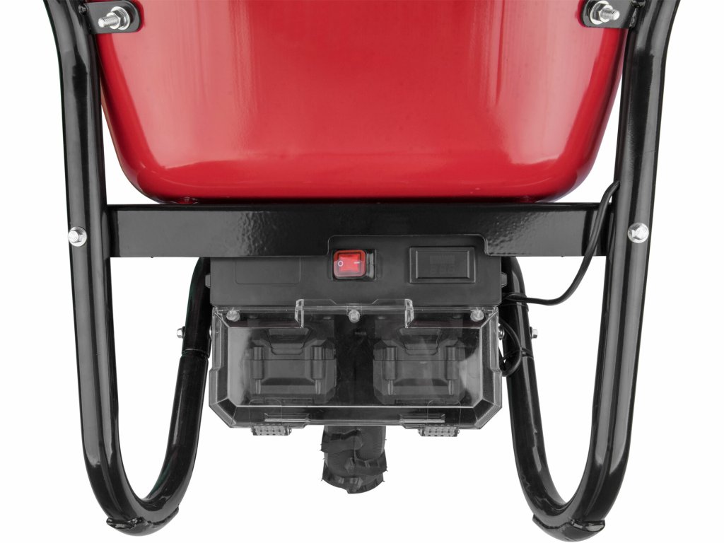 Akumulátorový fúrik s elektrickým pohonom je určený na prepravu tuhých, sypkých alebo hustých materiálov. Elektrický pohon podstatne urýchľuje prepravu a zároveň znižuje únavu počas obsluhy, čo zvyšuje produktivitu práce. Použitie Li-ion batérie výrazne znižuje hmotnosť fúrika oproti modelom, ktoré sú poháňané olovenými batériami. Na pravej rukoväti sa nachádza ovládač, kde je možné pomocou palca nastaviť okamžitú rýchlosť pohybu, voliť jazdu dopredu alebo dozadu, aktivovať brzdu, normálnu alebo Turbo rýchlosť. Pre bežnú prevádzku sa používa normálna rýchlosť, Turbo je možné použiť pri jazde do kopca, v ťažkom teréne alebo pri preprave ťažšieho nákladu. Fúrik je poháňaný najmodernejším bezuhlíkovým 40V motorom. Tento nový typ motora má vyššiu životnosť, je výkonnejší a má menšiu spotrebu elektrickej energie ako klasické motory s uhlíkovými kefami. Ak je to nutné, je možné motor kompletne vypnúť a používať fúrik len na ručný pohon. Elektrická brzda sa používa ak je potrebné zamedziť pohybu fúrika na mieste. Kolesá s hlbokou vzorkou do terénu poskytujú dobrú trakciu. Fúrik je dodávaný s kovovou korbou s objemom 80l, lisovanou z jedného kusa plechu. Pre prepravu pevného objemnejšieho nákladu (napr. krabice, polená...) je možné dokúpiť rámovú konštrukciu, ktorá sa priskrutkuje namiesto korby. Elektronika fúrika má krytie IP64, čo mu umožňuje dočasnú prácu vo vlhkom prostredí, prípadne umývanie prúdom vody, nie je ale určený na trvalú prevádzku alebo skladovanie vo vlhkom prostredí. Pre jednoduchšiu prepravu v aute je možné sklopiť rúčky, takže sa fúrik zmestí aj do menšieho auta. Zdrojom elektrickej energie sú silné Share20V akumulátory, ktoré sa predávajú samostatne. Z dôvodu vysokého odberu je nutné použiť 6Ah alebo 8Ah verziu. Výhodou použitia Share20V akumulátorov je, že keď fúrik nepoužívate, môžete ich tiež používať v našom neustále rozširujúcom sa sortimente náradia používajúceho rovnaký typ akumulátora. Vyberateľné batérie umožňujú ich ľahké nabíjanie a skladovanie v suchom a zateplenom prostredí, čo je veľmi dôležité pre ich životnosť. Batérie majú ochranu proti vybitiu pod minimálnu úroveň, pred preťažením pri nadmernom odbere prúdu, prebitím, skratom a náhlemu zvýšeniu teploty pri práci.