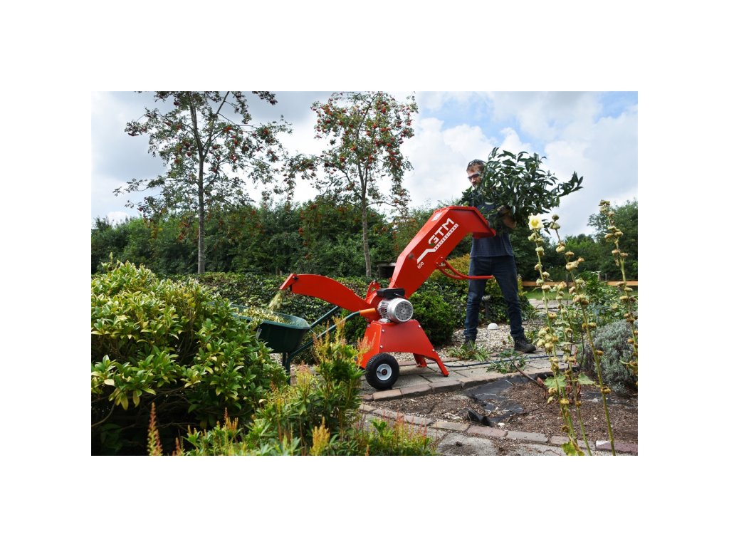 Elektrický drtič od GTM Professional si zachovává veškeré přednosti i technické řešení svých benzínových sourozenců, které je totálně odlišují od své konkurence jak kvalitou, tak i rychlostí a snadností drcení dřevní hmoty. Základem je opět kovový buben se dvěma noži ze speciální oceli, které jsou otočné a dají se brousit. Drcené větve o průměru až 5 cm jsou pak sami natahovány do násypky a lehce a rychle rozdrceny. Výhozový tunel s nastavitelným deflektorem může dřevní štěpky usměrnit třeba do přistaveného kolečka nebo jiné nádoby. Provoz tohoto drtiče vyžaduje 20A jistič.
