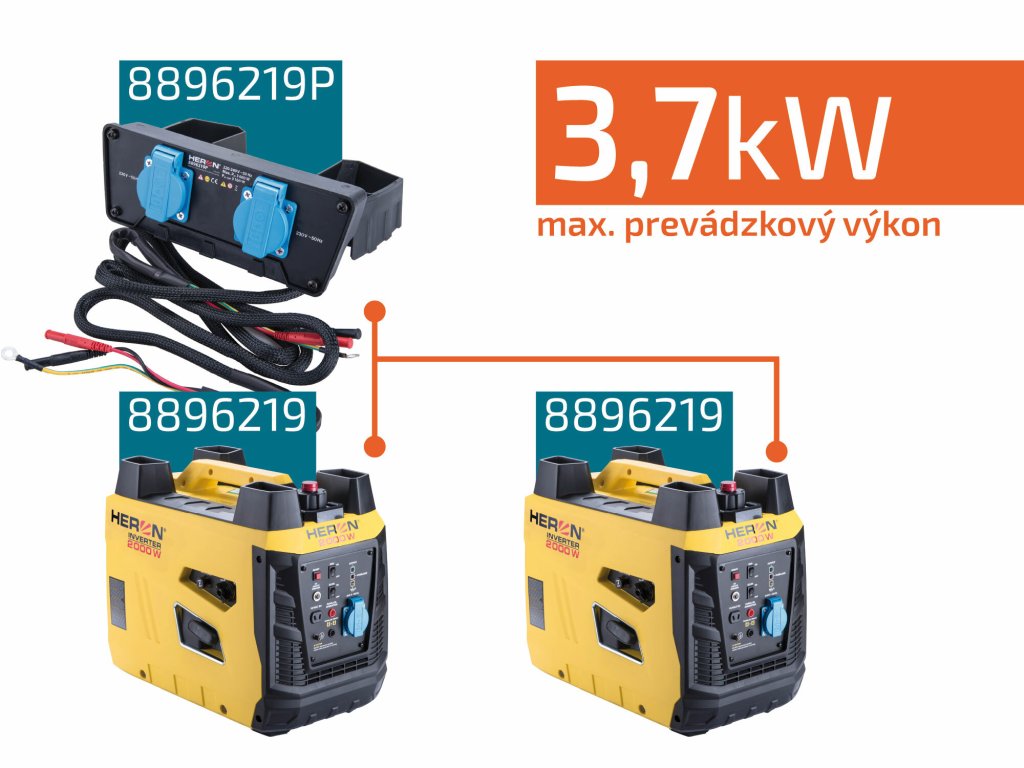- spojením dvoch elektrocentrál dosiahnete najvyšší menovitý výkon 3,7kW
