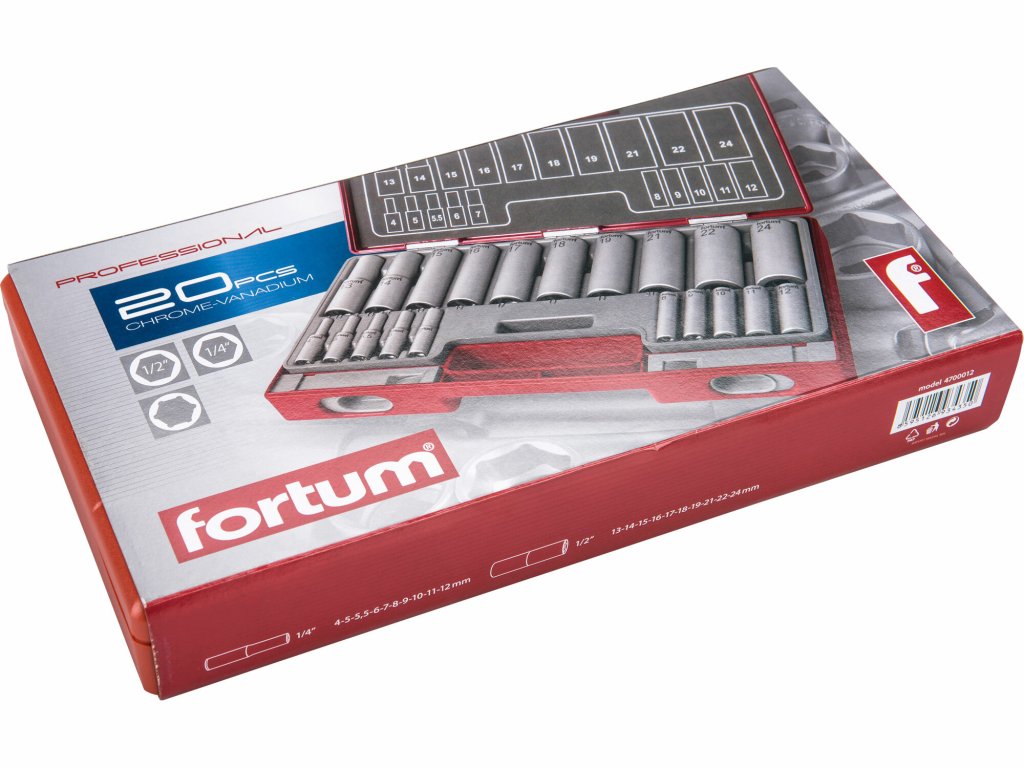 FORTUM 4700012 Sada predĺžených nástrčných kľúčov, 1/4", 1/2", 20ks