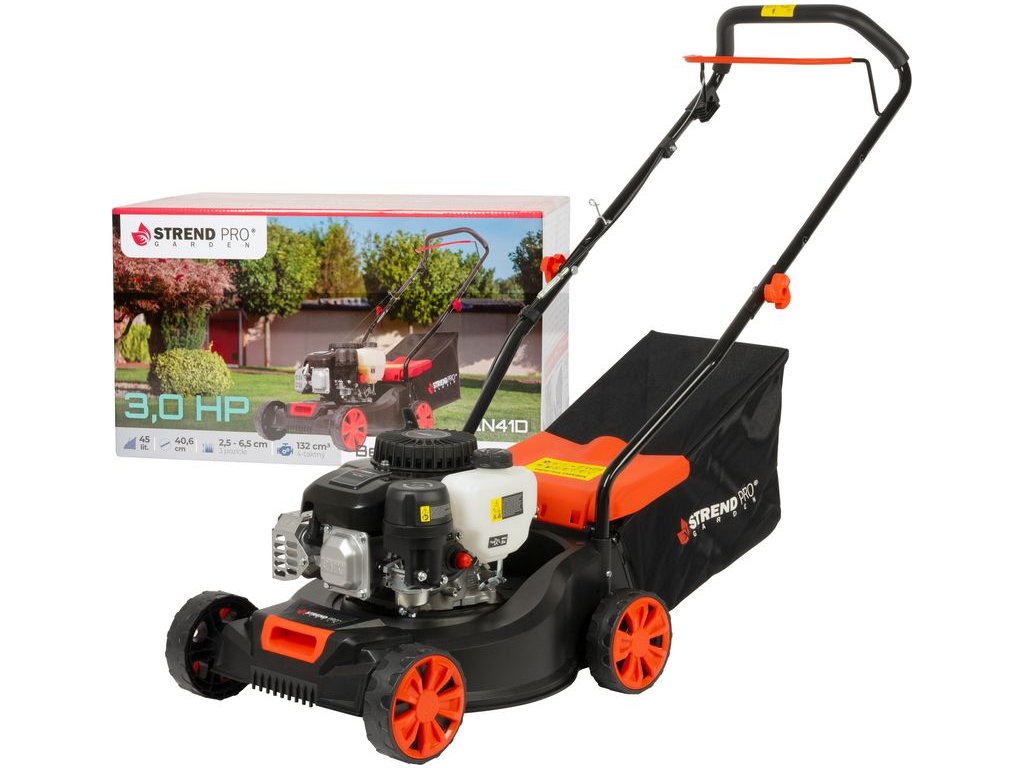 Benzínová kosačka STREND PRO je ideálnym riešením pre menšie a stredne veľké záhrady. Vďaka svojmu výkonnému 2,2 kW motoru s objemom 132 cm3 poskytuje dostatočný výkon na efektívne a rýchle kosenie trávnika.