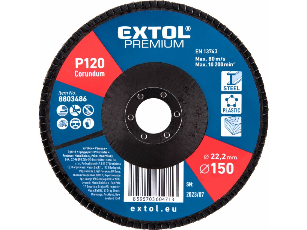 EXTOL PREMIUM 8803486 Kotúč lamelový šikmý korundový, P120, 150mm, diera 22,2mm