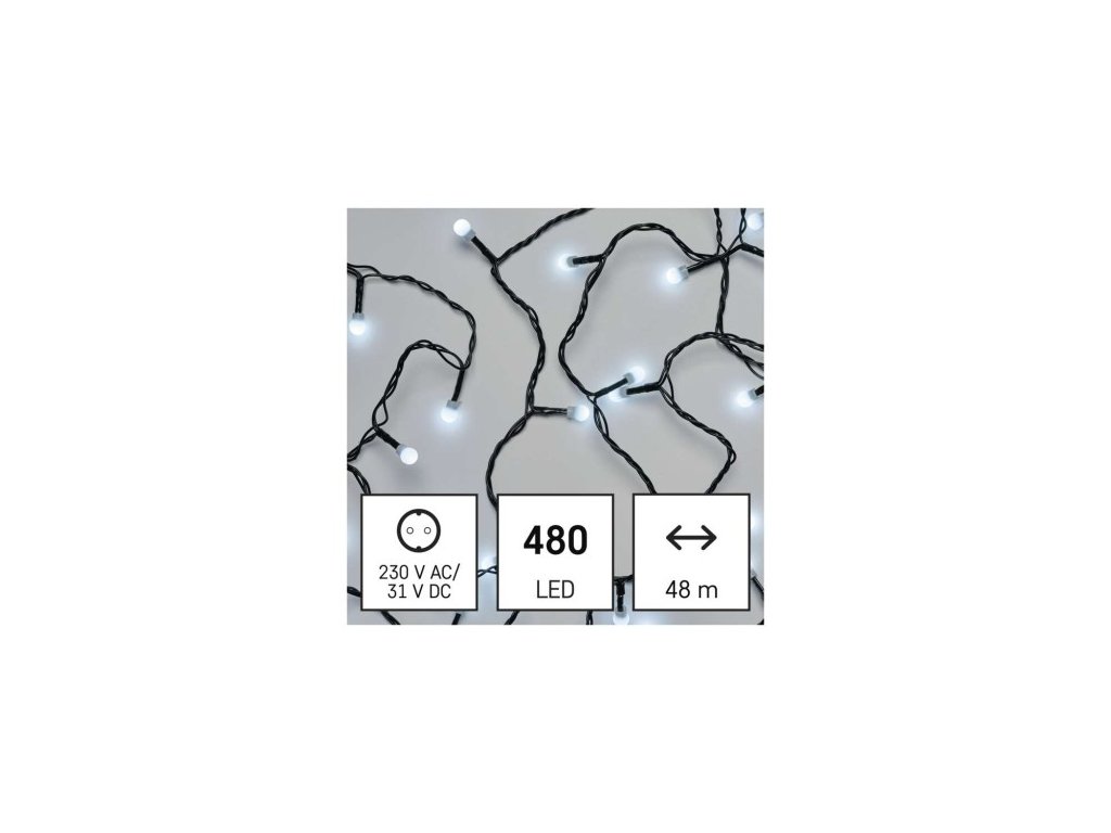 LED vianočná cherry reťaz – guličky, 48 m, vonkajšia aj vnútorná, studená biela, časovač