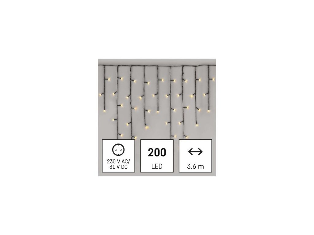 LED vianočné cencúle, 3,6 m, vonkajšie aj vnútorné, teplá biela, programy