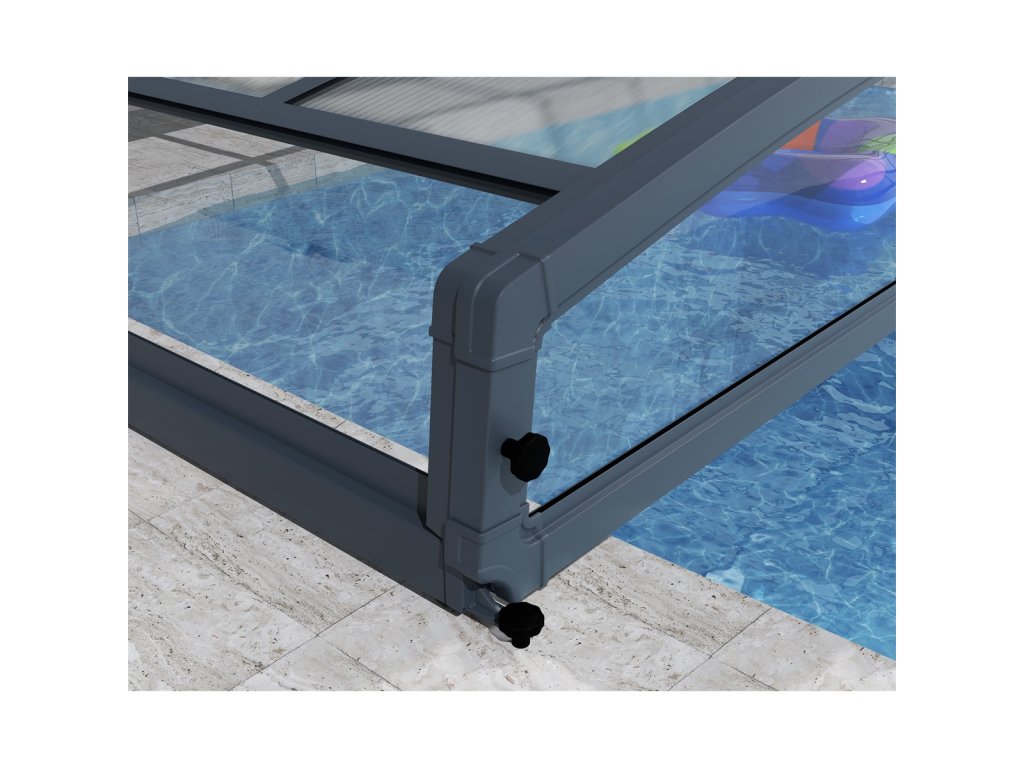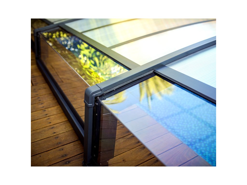 Predĺžte si leto, užite si plávanie v teplejšej vode a udržujte svoj bazén čistý a bezpečný pre celú vašu rodinu. So svojim nízkym profilom a elegantným dizajnom toto zastrešenie od Palramu skvele a diskrétne zapadne do štýlu vašej záhrady. Jednotlivé diely rámu sú vyrobené z vysoko odolnej a ľahkej zliatiny hliníka a transparentné panely potom z toho najkvalitnejšieho polykarbonátu so 100% UV ochranou. Jednotlivé diely systému sa do seba hladko teleskopicky zasúvajú po pojazdových kolieskach v oboch smeroch, takže je len na Vás, z ktorej strany bazéna si vytvoríte prístup. Celý kryt bol tiež vymyslený tak, aby sa pod ním napríklad v chladnom alebo daždivom počasí dalo bez problémov plávať. • Chráni a zabezpečuje Váš bazén v súlade s bezpečnostnou normou NF P90-309. • Elegantný a nízky profil krytý kryštalicky čistým polykarbonátom. • Znižuje náklady na vykurovanie bazéna a udržuje bazén čistý od lístia, prachu a pod. • Číre bočné panely pre skvelú viditeľnosť z bazéna aj dovnútra bazéna. • Možnosť plne zložiť až za okraj bazéna (z oboch smerov) pre ideálny prístup do bazéna. • Nie sú potrebné žiadne koľajnice, ktoré môžu spôsobiť zranenie av ktorých sa držia nečistoty. • Vďaka kvalitným pojazdovým kolieskam a ľahkej konštrukcii sa ľahko sa obsluhuje aj v jednej osobe. • Vďaka použitiu kvalitných a odolných materiálov je zaručená vysoká odolnosť v akýchkoľvek podnebných podmienkach. • Panely sú vyrobené z najkvalitnejšieho nárazuvzdorného polykarbonátu so 100% UV ochranou. • Práškovo ošetrená hliníková konštrukcia spĺňa kvalitatívne parametre uznávaného certifikátu „Qualicoat® Qualimarine label“. • Bezpečnostný zámok „Push'n Lock“ robí systém bezpečný aj z pohľadu detí. • Pojazdové kolesá sú vyrobené v kombinácii nerezu a polyamidu (nylon), takže obstoja bez korózie aj v agresívnom prostredí vody s chlórom. • Celé zastrešenie je zabalené v dobre manipulovateľných baleniach aj s prehľadným návodom na zostavenie. Rozmery balenia: 1. kartón 217 x 74 x 29 cm, hmotnosť 88 kg 2. kartón 253 x 74 x 20 cm, hmotnosť 92 kg 3. kartón 222 x 71 x 18 cm, hmotnosť 116 kg 4. kartón 219 x 75 x 14 cm, hmotnosť 55 kg 5. kartón 219 x 75 x 14 cm, hmotnosť 55 kg