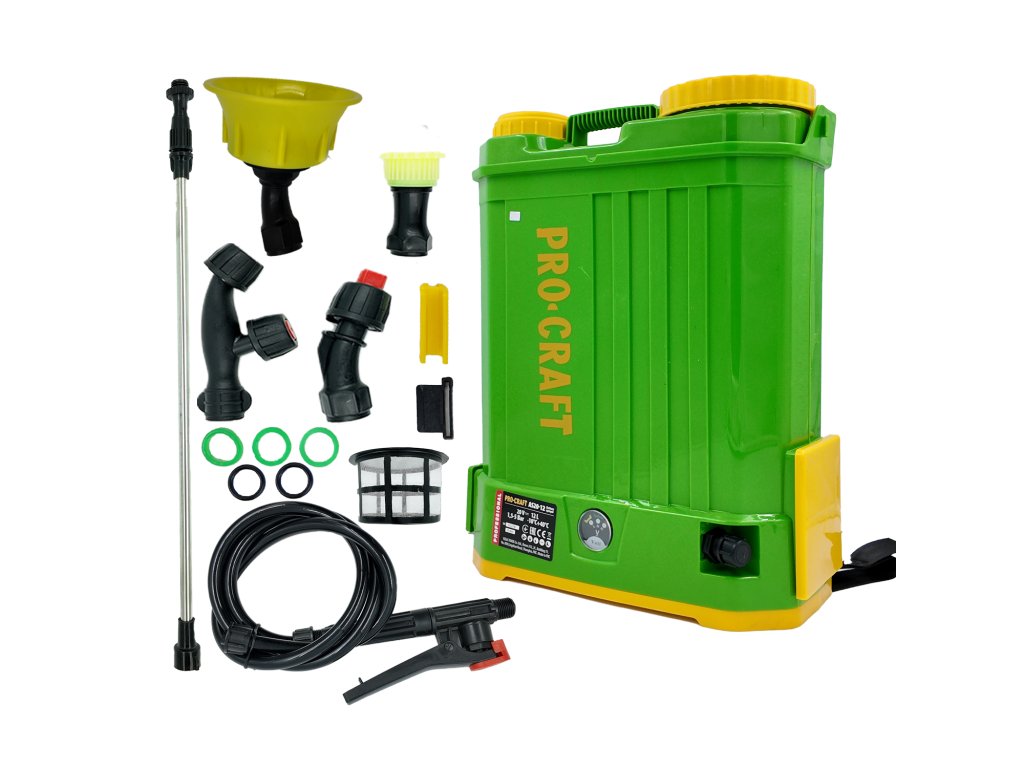 Akumulátorový postrekovač Procraft AS20-12 je určený na postrekovanie, rozprašovanie produktov a prostriedkov, ošetrovanie rastlín a stromov, ničenie škodcov a buriny, dezinfekciu a čistenie priestorov. Po vyprázdnení nádoby dôjde k automatickému vypnutiu. Spoľahlivé čerpadlo s nastaviteľným prietokom a tlakom do 5 barov a integrovanou barometrickou reguláciou. Postrekovač má teleskopickú kovovú trubicu a je vyrobený z vysokokvalitných materiálov, ktoré pod tlakom nepraskajú. Je vybavený gumovým tesnením, ktoré je odolnejšie ako štandardné silikónové tesnenie. Súčasťou balenia sú náhradné vymeniteľné trysky, trysky pre rôzne vzory postreku, praktický chrbtový popruh, tesniace krúžky a pohodlná spúšť pištole. Nádoba na postrek je priesvitná, takže počas práce vidíte objem kvapaliny. Kartónové balenie.