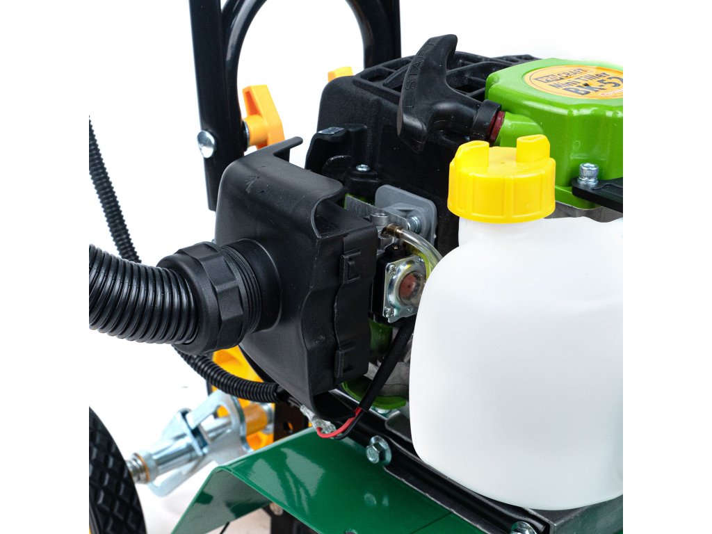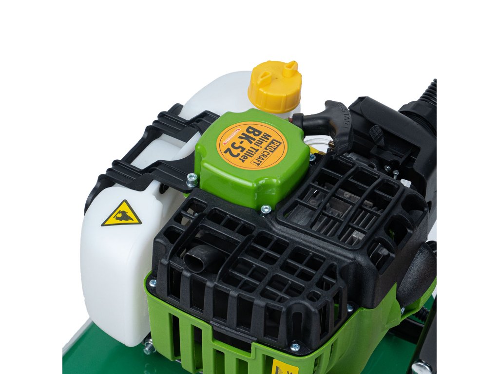 - Výkonný benzínový motor – spoľahlivý motor s výkonom 1400 W (1,9 HP) a objemom 51,7 cm³ poskytuje dostatočnú silu aj pre náročnejšie práce.