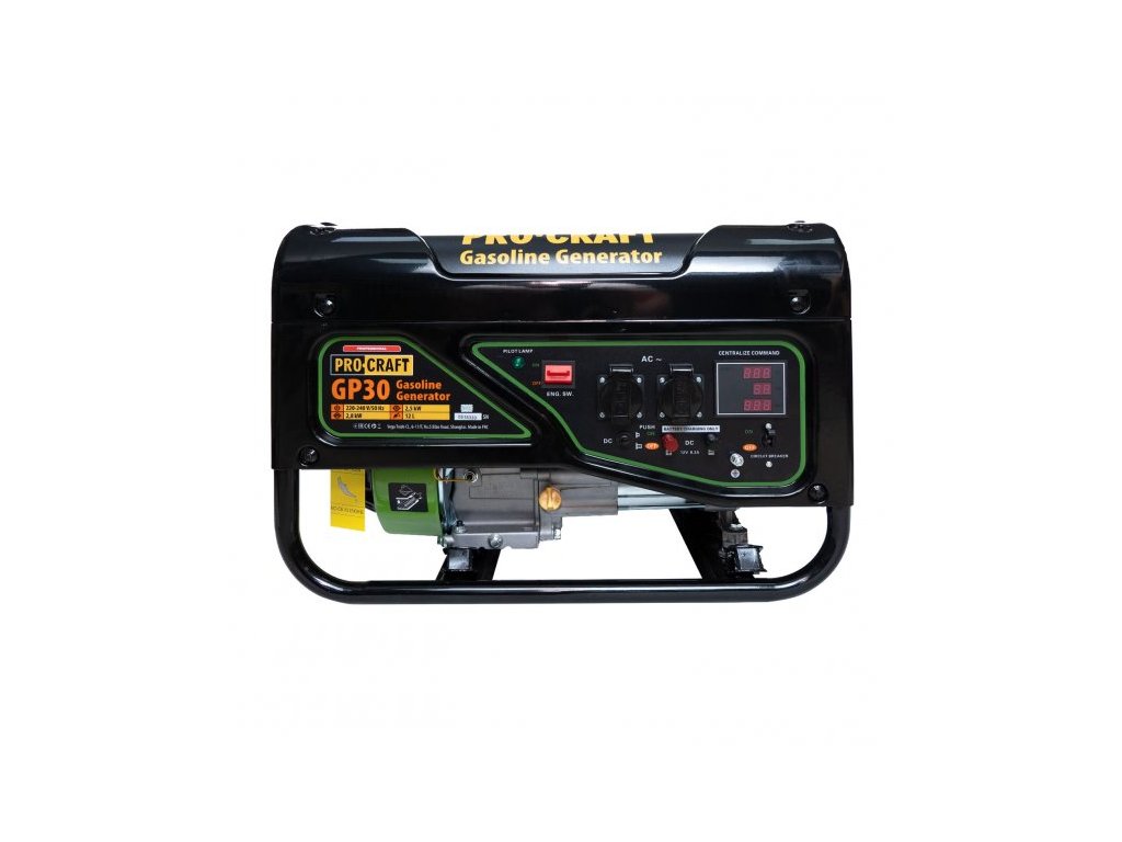 Procraft GP30 je určený na použitie ako nezávislý generátor energie pri výpadku prúdu, ako zdroj energie pri kempovaní, na záhrade atď., kde nie je k dispozícii elektrická sieť. Vďaka vysokému výkonu dokáže napájať nielen domáce spotrebiče, ale aj spotrebiče indukčného typu. Generátor energie má 12l palivovú nádrž, ktorá zaručuje dlhú nepretržitú prevádzku. Robustný ochranný rám umožňuje používať generátor energie v akýchkoľvek podmienkach a uľahčuje aj jeho prepravu. Súčasťou dodávky je kľúč na zapaľovaciu sviečku. Balenie v kartóne. Prepäťová ochrana AVR.
