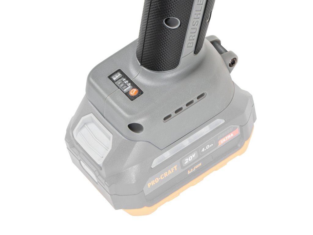 Batéria a nabíjačka nie sú súčasťou balenia. Brúska je kompatibilná s univerzálnymi 20V batériami Procraft, ktoré je možné použiť pre ďalšie nástroje tejto série.